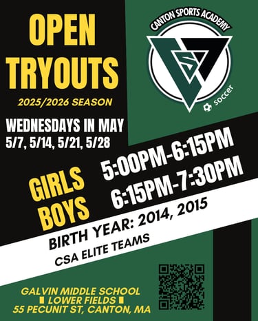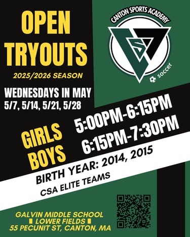 Canton Sports Academy hold tryouts to evaluate players' skills and potential, ensuring we create balanced and competitive teams. Tryouts also give kids a chance to showcase their abilities, meet coaches, and get a feel for the club's atmosphere. It's about finding the right fit for both the player and the team, fostering growth, camaraderie, and a love for the game.